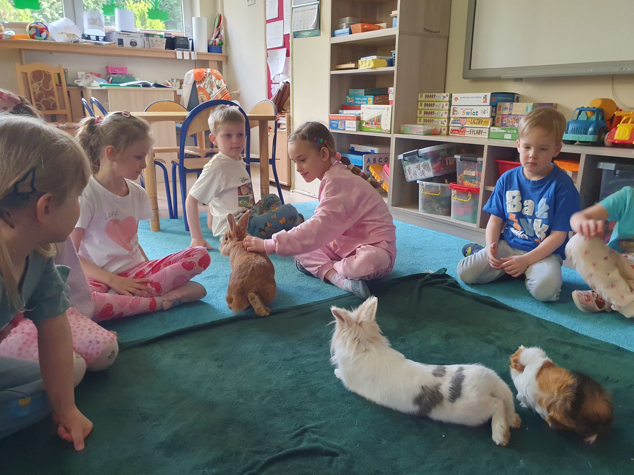 W naszym przedszkolu odwiedzili nas nowi przyjaciele. Była świnka morska Helenka i króliczki. Dzieci w sposób ciekawy i bezpieczny poznały świat zwierzątek, dowiedziały sie jak należy prawidłowo je karmić, opiekować się. Mogły dotknąć , pogłaskać. TO BYŁA FAJNA PRZYGODA!!!!